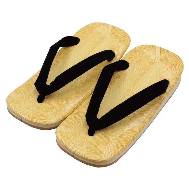 スポンジ底 草履 黒鼻緒 スポンジ底は傷が付きにくいということで、舞台履きなどにも大変重宝いたします。 台表はビニール製なので、水に濡れたり汚れても軽く拭きとることができるのでお手入れもとても簡単です。 底には滑り止め波型加工が施されております。 (※写真と底の形状が異なる場合がございますのでご了承ください。) お着物はもちろん、作務衣や甚平などにも気軽にお役立てください! LLサイズ 長さ:約27.0cm ・ 巾:約10.5cm ・ かかと高さ:約3.5cm ■素材 表/ビニール 底/スポンジ